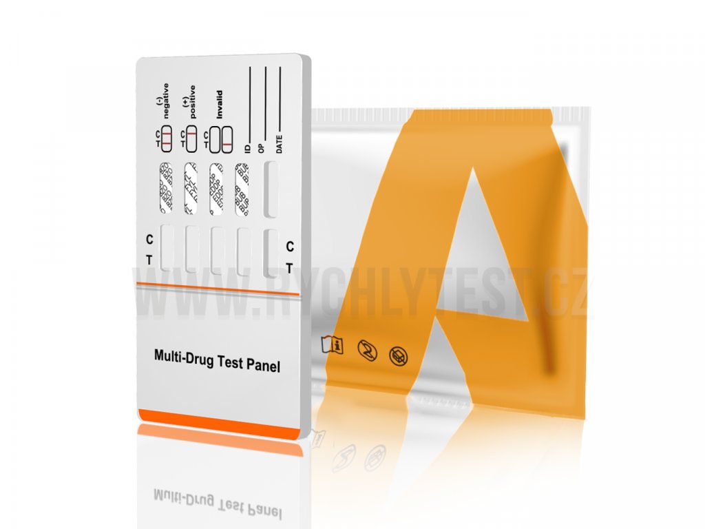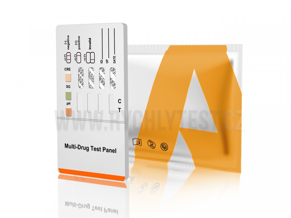 Test na detekci následujících drog a jejich metabolitů včetně testu na falšování vzorku: BZD 300, BUP 10, EDDP 100, FYL 20, MET 500, MOR 300, OXY100, TRA100 + 3 parametrový testovací proužek na falšování vzorku, který detekuje pH, kreatinin a specifickou hmotnost moče. Provedení testu je jednoduché, bez použití přístroje, vizuální odečet výsledku do 5 minut. Doba použitelnosti : 24 měsíců od data výroby, skladování při pokojové teplotě.